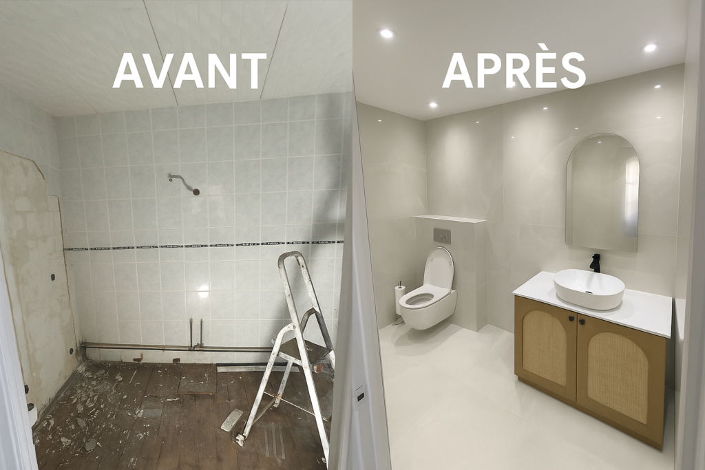 Nous réalisons des salles de bain clé en main, douches à l’italienne, pose de carrelage, peinture, parquet et rénovations complètes. Travail soigné, finitions de qualité et devis gratuit sur Évreux, Louviers, Vernon et tout l’Eure (27).