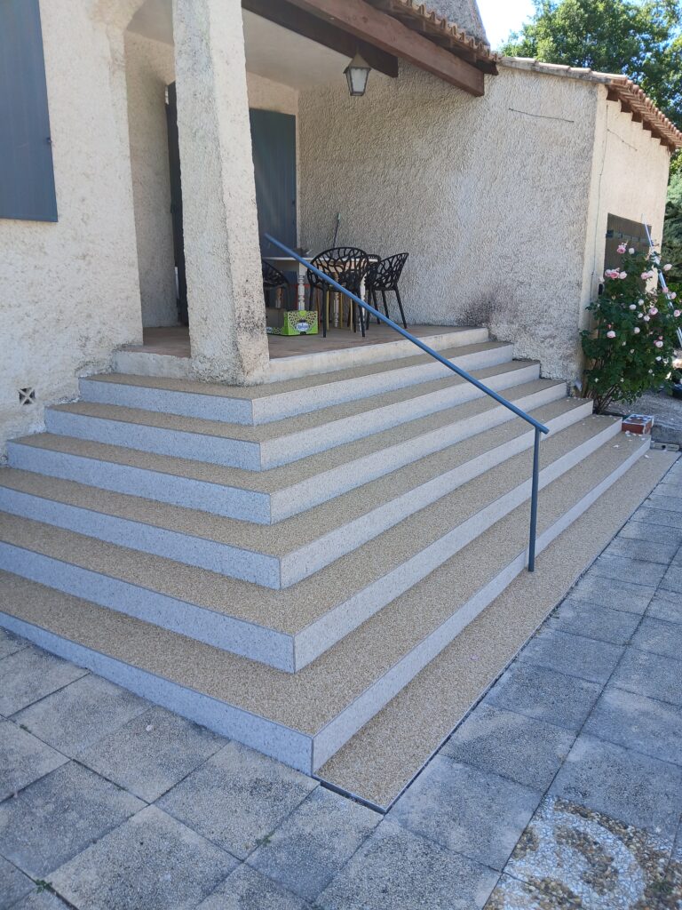- Pose de Marbreline pour terrasses, allées et plages de piscine