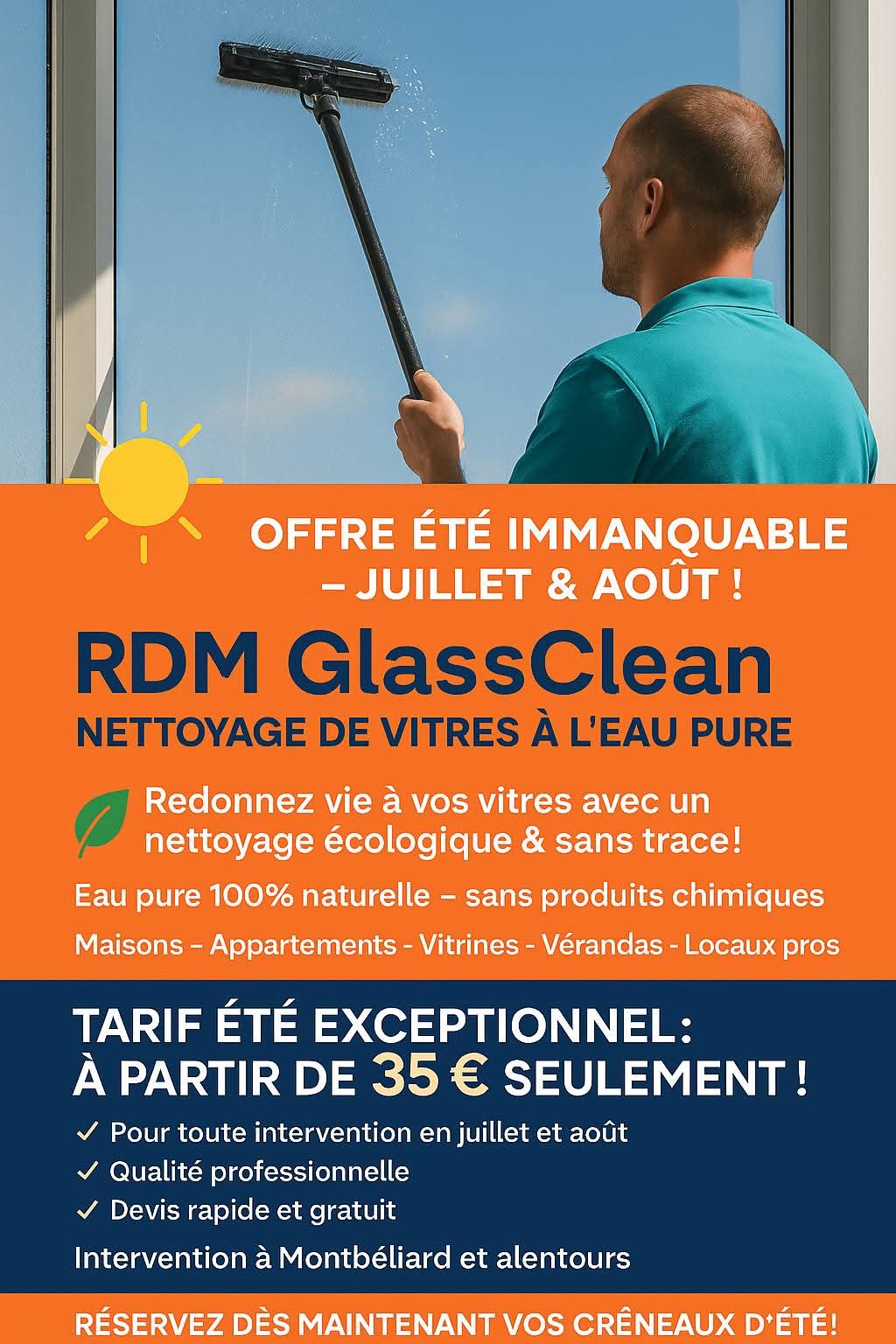 Spécialiste du nettoyage de vitres et panneaux photovoltaïques à l’eau pure Nous utilisons une technologie de nettoyage sans produits chimiques, uniquement à l’eau pure filtrée par osmose inverse, pour un résultat éclatant sans traces et respectueux de l’environnement. Pourquoi choisir notre service ?