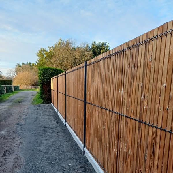 La société propose la pose de clôtures et portails variés, adaptés à tous types de terrains et de configurations. Les options comprennent la clôture rigide, en aluminium, bois, PVC ou béton. Chaque installation est réalisée selon les normes en vigueur, pour assurer solidité et durabilité. L’aménagement inclut également la création de murets, allées et bordures afin de structurer l’espace extérieur. Les interventions sont adaptées à la fois aux particuliers et aux professionnels souhaitant sécuriser ou délimiter leur propriété en Loire-Atlantique.