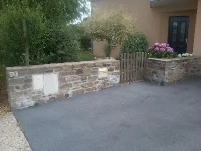 Aménagement de vos extérieurs Chateaubourg avec Pierres et Béton, spécialiste des murs en pierre, béton désactivé et dallage en Ille et Vilaine (35).