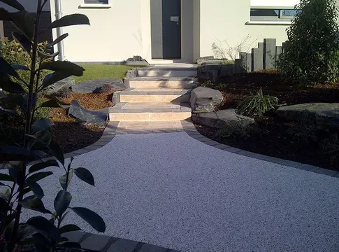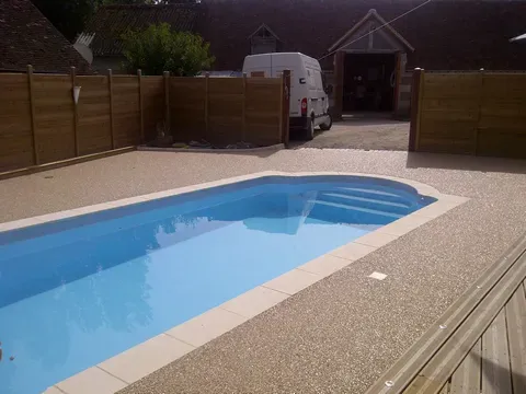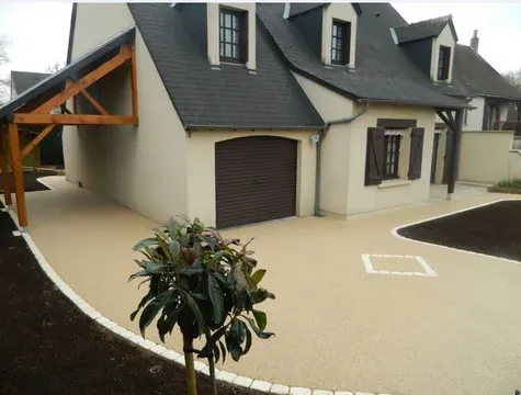 Les + de l'entreprise : vente et aménagement de granulat résine pour l'aménagement de vos extérieurs.