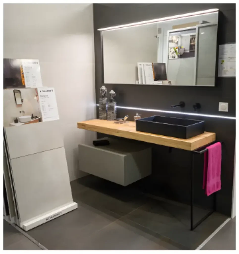 En plus des carrelages, CARRO DECO propose une large gamme de meubles de salle de bains. Nos meubles allient fonctionnalité et design pour répondre à tous vos besoins de rangement et de décoration. Que vous ayez une grande ou une petite salle de bains, nous avons des solutions adaptées. Nos conseillers vous aident à choisir les meubles qui optimiseront votre espace tout en respectant votre style et vos préférences. Venez découvrir notre showroom à Moulins-lès-Metz et laissez-vous inspirer par nos différentes configurations et styles de meubles. Chaque meuble est conçu pour offrir durabilité et élégance, transformant votre salle de bains en un lieu de détente et de confort. Profitez également de nos services de pose pour une installation sans souci.