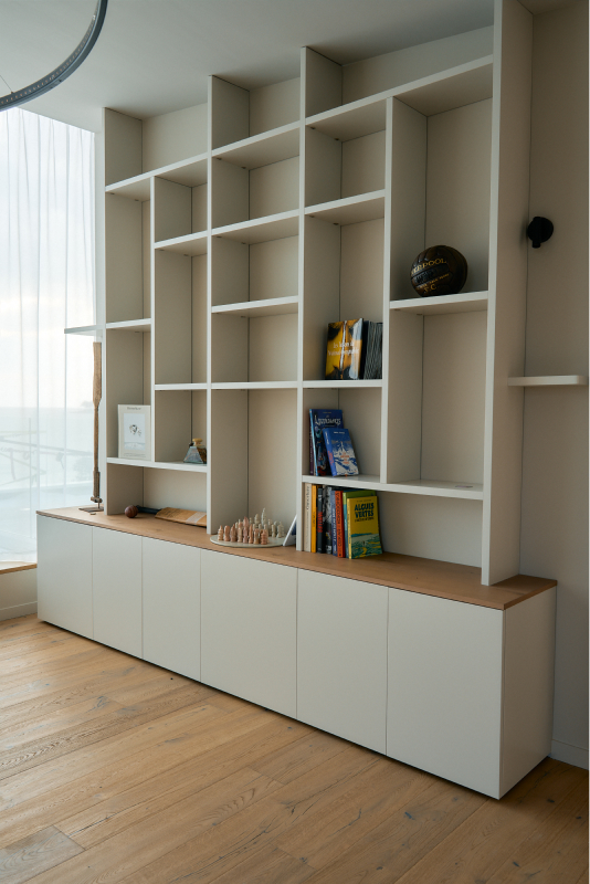 AT AGENCEMENT propose également des services de création de mobilier sur mesure, vous permettant d'optimiser et de personnaliser votre espace de vie. Que vous ayez besoin d'un dressing, d'étagères, ou de meubles spécifiques pour votre salon, notre équipe d'experts est prête à concevoir des pièces uniques qui s'intègrent parfaitement dans votre intérieur. Chaque projet est unique, et nous nous engageons à concevoir des meubles qui répondent à vos besoins de rangement tout en ajoutant une touche esthétique à votre espace. Fabriqué localement, notre mobilier est le reflet d'un savoir-faire artisanal de qualité.
